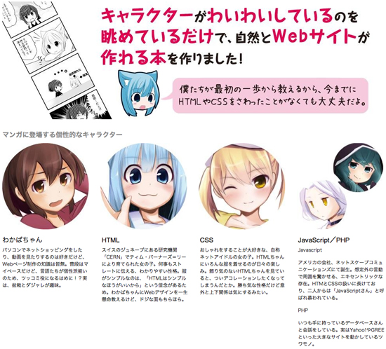 そんな方のために、キャラクターがわいわいしているのを眺めているだけで、自然とWebサイトが作れる本を作りました。