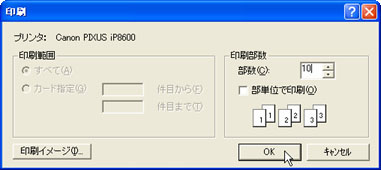 [部数(C)]に印刷部数を入力し、[OK]ボタンをクリックします。![]() |