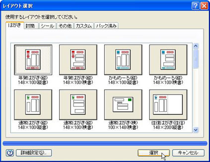 [年賀ハガキ(縦)]をクリックし、[選択]ボタンをクリックします。![]() |