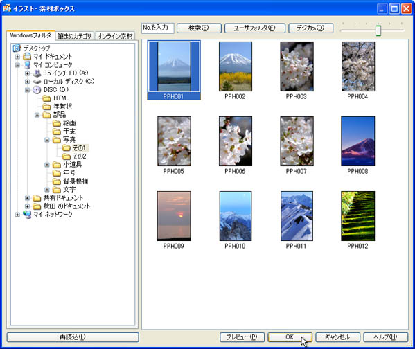 目的の画像を選択し、[OK]ボタンをクリックします。![]() |