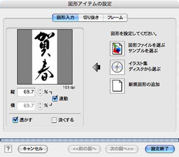 画像まわりを透かす場合は、[透かす]をONにして、[設定終了]ボタンをクリックします。![]() |