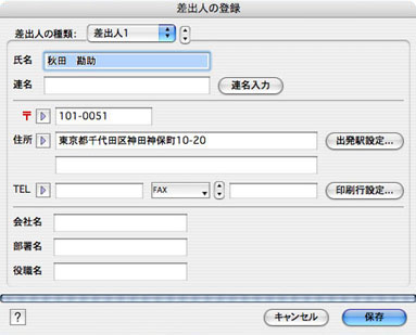 差出人情報を登録するには、次のように操作します。 | ||||||||||||||||||||