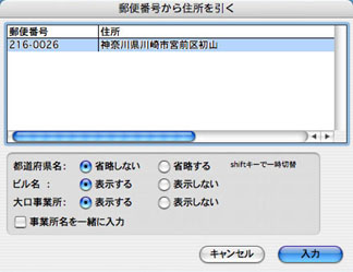 住所が検索されるので、[入力]ボタンをクリックします。![]() |