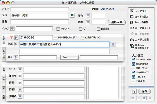 ガイドパレットの[住所録入力]ボタンをクリックします。 | ||||||||||||||||||||