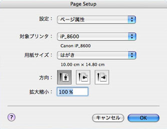[用紙サイズ]の一覧から「はがき」→「はがき」または「はがき(フチなし)」を選択し、[OK]ボタンをクリックします。![]() |