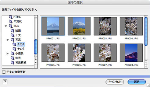 目的の画像をクリックし、[選択]ボタンをクリックします。![]() |