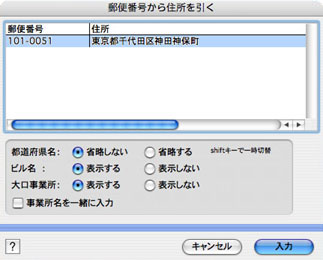 住所が検索されるので、[入力]ボタンをクリックします。 | ||||||||||||||||||||