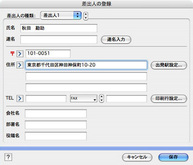 [フリガナ]にフリガナを入力し、[氏名]に宛先の氏名を入力します。 | ||||||||||||||||||||
