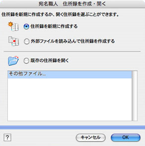 [住所録を新規に作成する]をONにして、[OK]ボタンをクリックします。![]() |