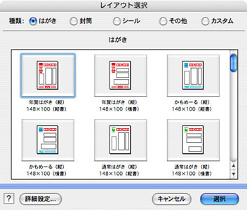 目的のレイアウトをクリックし、[選択]ボタンをクリックします。![]() |