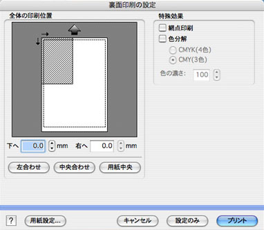 ガイドパレットの[裏面を印刷]ボタンをクリックします。 | ||||||||||||||||||||