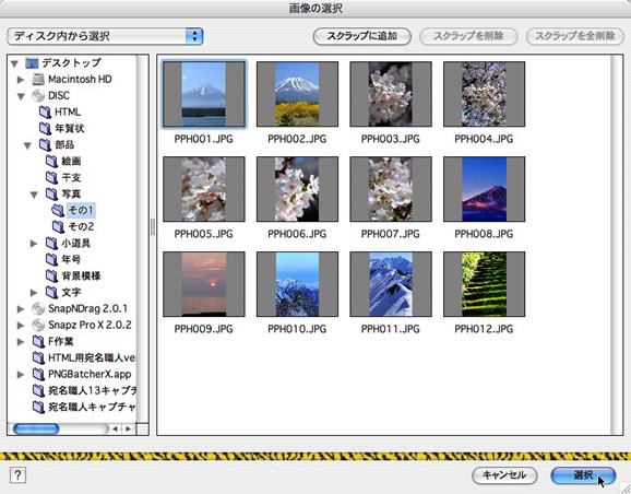 目的の画像をクリックし、[選択]ボタンをクリックします。![]() |