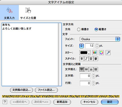 | 文面のレイアウトを設定するには、次のように操作します。 | |||||||||||||||||||||