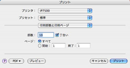 [印刷部数]と[印刷ページ]を設定します。![]() |
