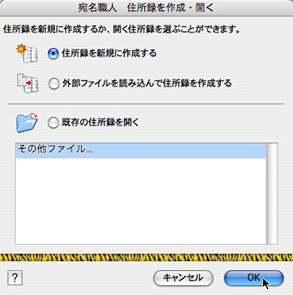 [住所録を新規に作成する]をONにして、[OK]ボタンをクリックします。![]() |