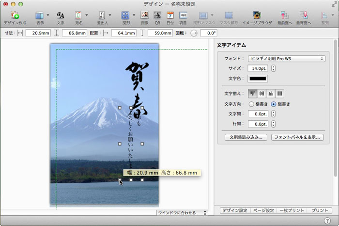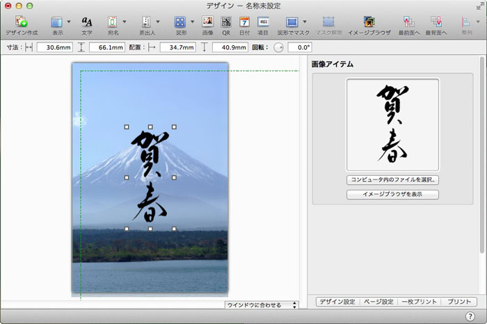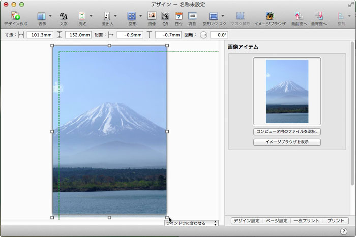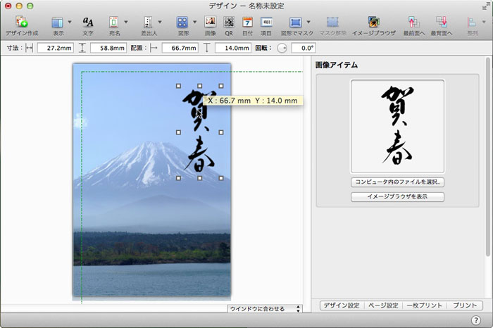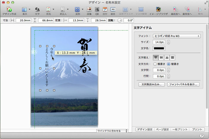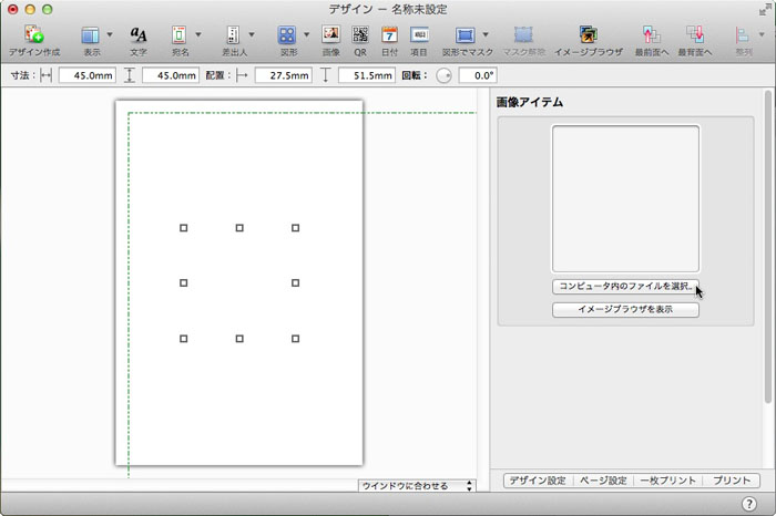 デザインウィンドウの右下の[プリント]ボタンをクリックします。 | ||||||||||||||||||||