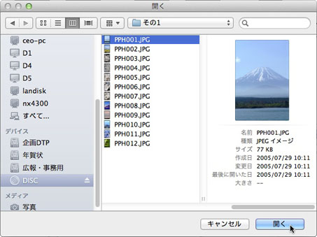 目的の画像をクリックし、[開く]ボタンをクリックします。![]() |