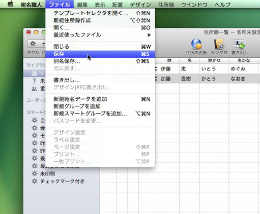 住所録一覧が前面にある状態で[ファイル]→[保存]を選択します。![]() |