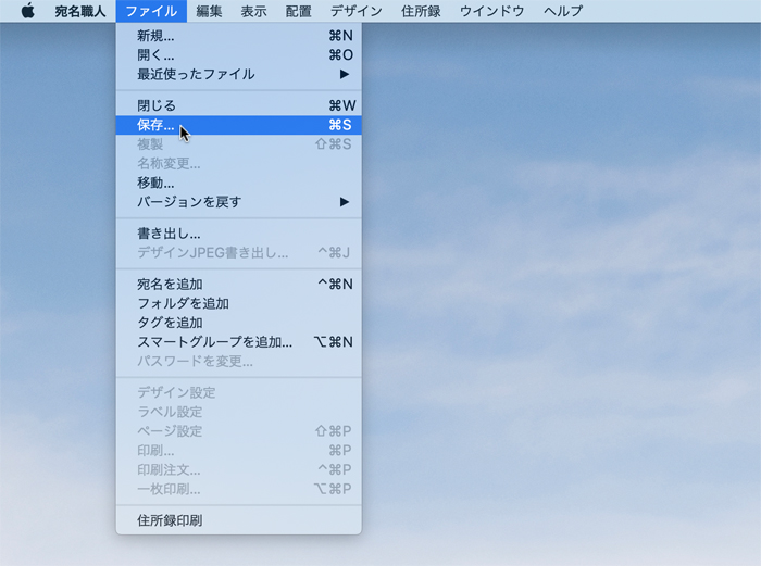 住所録一覧が前面にある状態で[ファイル]→[保存]を選択します。![]() |