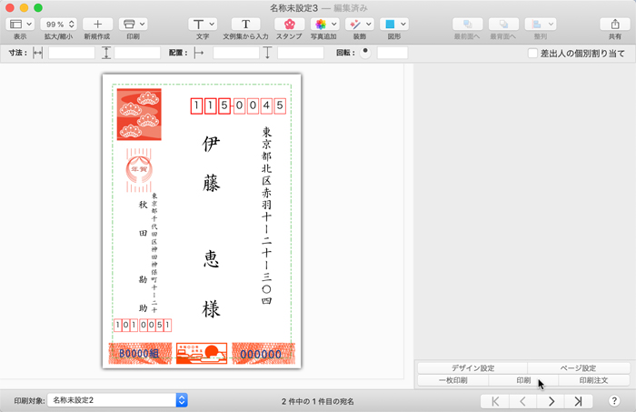 | 宛名面のレイアウトを設定するには、次のように操作します。 | |||||||||||||||||||||