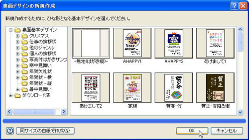 [裏面デザインを新規に作成する(N)]をONにして、[OK]ボタンをクリックします。![]() |