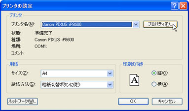[プリンタ名(N)]でプリンタを選択し、[プロパティ(P)]ボタンをクリックします。![]() |