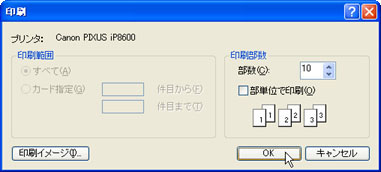 [部数(C)]に印刷部数を入力し、[OK]ボタンをクリックします。![]() |