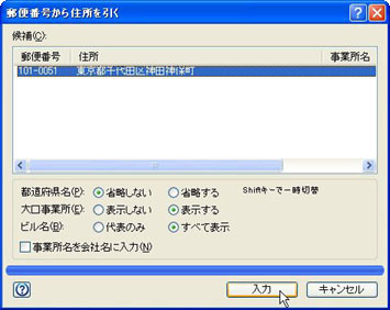 住所が検索されるので、[入力]ボタンをクリックします。![]() |