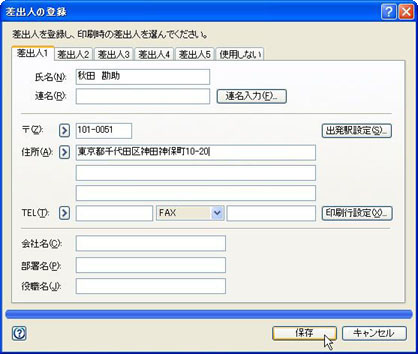 | 差出人情報を登録するには、次のように操作します。 | |||||||||||||||||||||