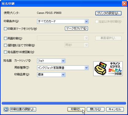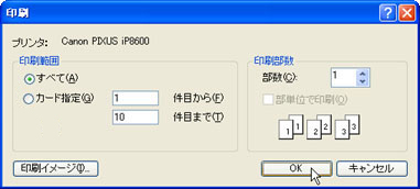 [印刷条件(G)]の▼をクリックして、「すべてのカード」を選択し、[印刷(P)]ボタンをクリックします。![]() |