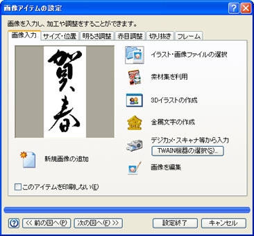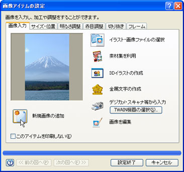 (3)〜(7)の操作と同様にして、目的の画像を選択し、[設定終了]ボタンをクリックします。![]() |
