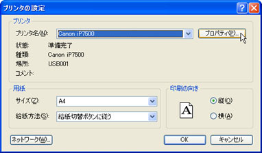 [プリンタ名(N)]でプリンタを選択し、[プロパティ(P)]ボタンをクリックします。![]() |