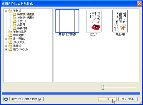 [裏面デザインを新規に作成する(N)]をONにして、[OK]ボタンをクリックします。![]() |