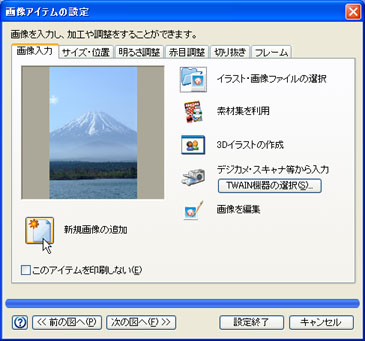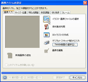 「画像入力」タブをクリックし、[イラスト・画像ファイルの選択]ボタンをクリックします。![]() |