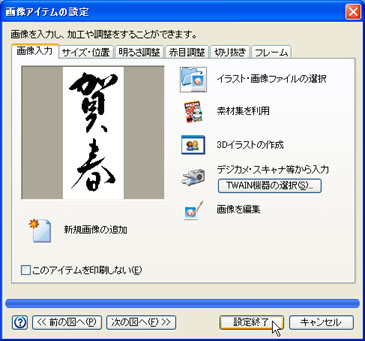 (3)〜(7)の操作と同様にして、目的の画像を選択し、[設定終了]ボタンをクリックします。![]() |