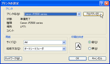 [プリンタ名(N)]でプリンタを選択し、[プロパティ(P)]ボタンをクリックします。![]() |