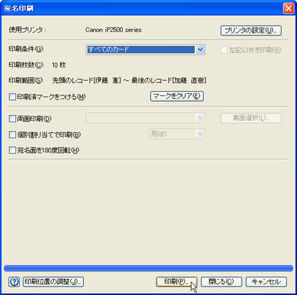 [印刷条件(G)]の▼をクリックして、「すべてのカード」を選択し、[印刷(P)]ボタンをクリックします。![]() |