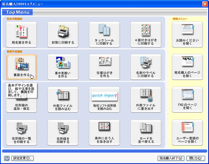 ※このページに掲載している画面は、アジェンダ版の宛名職人2009の画面になります。ここで紹介している操作に関しては、ソースネクスト版の宛名職人2009でも同様に操作できます。