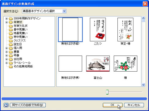 [裏面デザインを新規に作成する(N)]をONにして、[OK]ボタンをクリックします。![]() |