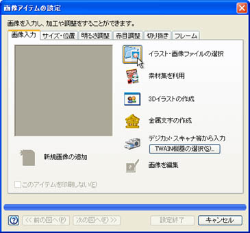 「画像入力」タブをクリックし、[イラスト・画像ファイルの選択]ボタンをクリックします。![]() |