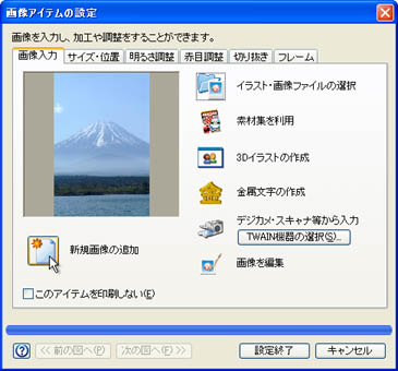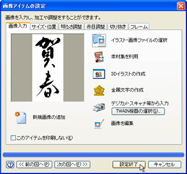 (3)〜(7)の操作と同様にして、目的の画像を選択し、[設定終了]ボタンをクリックします。![]() |