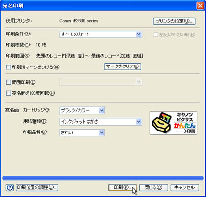 [印刷条件(G)]の▼をクリックして、「すべてのカード」を選択し、[印刷(P)]ボタンをクリックします。![]() |