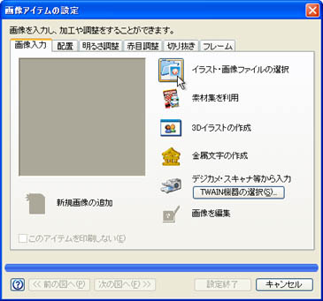 「画像入力」タブをクリックし、[イラスト・画像ファイルの選択]ボタンをクリックします。![]() |