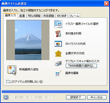 (3)〜(7)の操作と同様にして、目的の画像を選択し、[設定終了]ボタンをクリックします。![]() |
