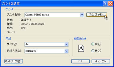 [プリンタ名(N)]でプリンタを選択し、[プロパティ(P)]ボタンをクリックします。![]() |
