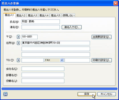 | 差出人情報を登録するには、次のように操作します。 | |||||||||||||||||||||