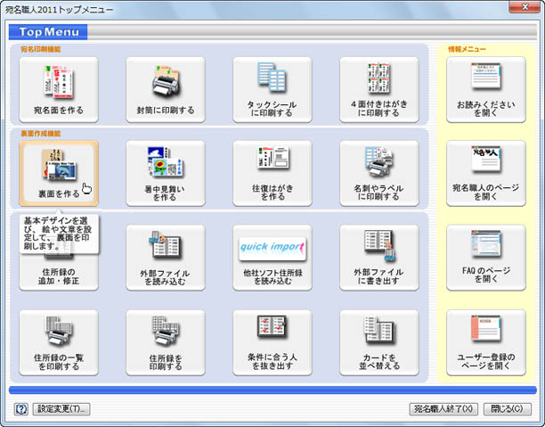 ※このページに掲載している画面は、アジェンダ版の宛名職人2011の画面になります。ここで紹介している操作に関しては、ソースネクスト版の宛名職人2011でも同様に操作できます。