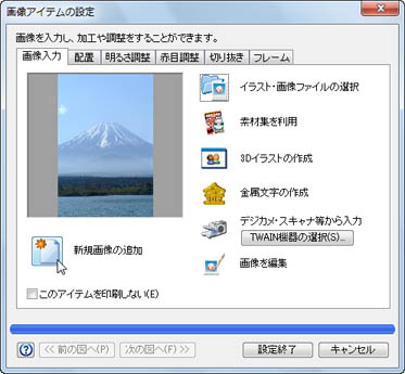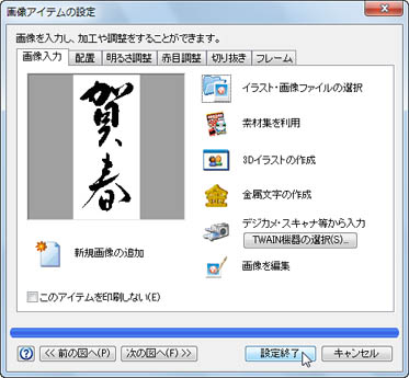 (3)〜(7)の操作と同様にして、目的の画像を選択し、[設定終了]ボタンをクリックします。![]() |