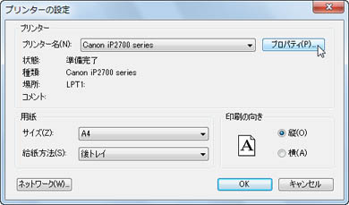 [プリンター名(N)]でプリンタを選択し、[プロパティ(P)]ボタンをクリックします。![]() |