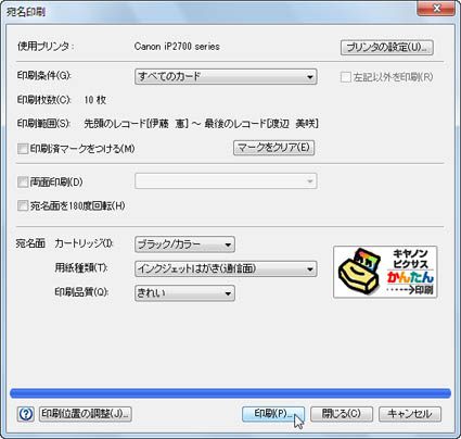 [印刷条件(G)]の▼をクリックして、「すべてのカード」を選択し、[印刷(P)]ボタンをクリックします。![]() |
